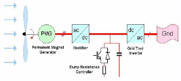 Grid Connection of a DWT would use an AC/DC/AC topology as shown below: