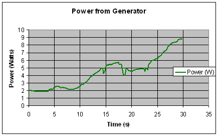 These graphs are an example of 30 seconds of generator output over a 22.5 ohm load resistor.