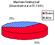 Diversified totals of heating/cooling loads (Figure 2) represent critical plant size and hence capital costs. Reduction of these loads can bring significant cost savings. Energy requirements (Figure 3) represent running costs, while the breakdown indicates the principal causal factors. Reducing these requirements will bring about running cost savings.