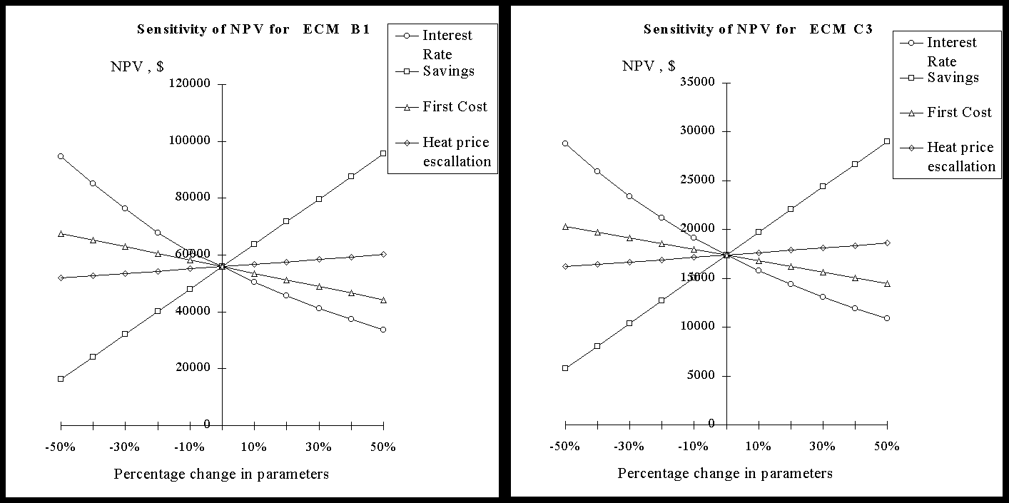 With a view to evaluation of proposed measures, a sensitive analysis of the main index NPV is made, as a function of the following factors: